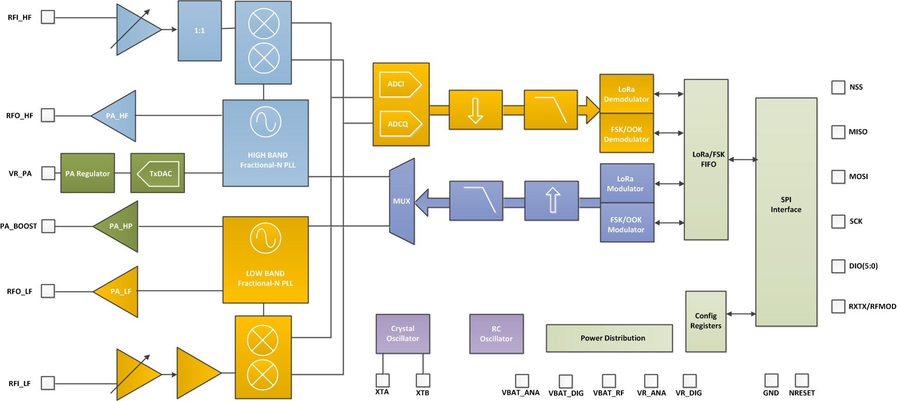 The direct tie of RFI and RFO pins, shared Rx, Tx paths FSK sensitivity, highest LNA gain. Higher frequency bands |